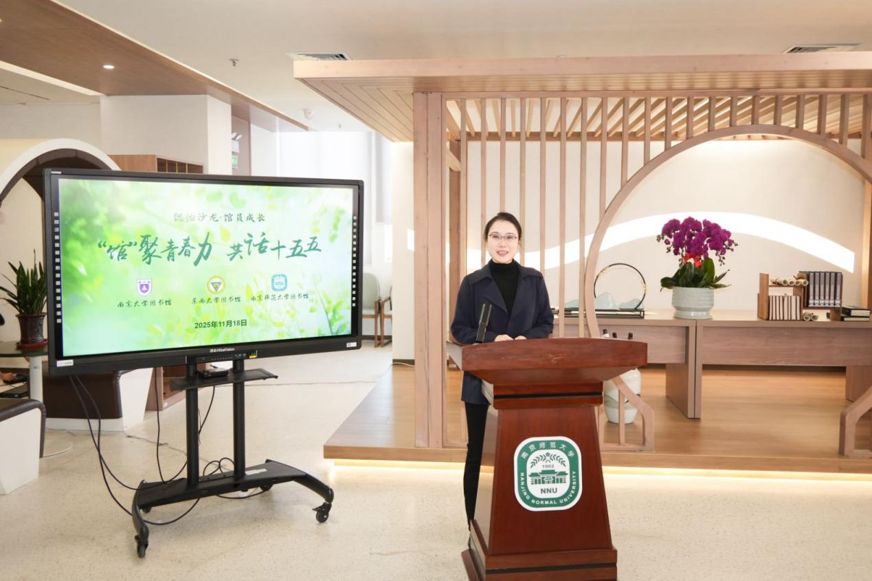 11月18日,由南京师范大学图书馆党委、南京大学图书馆党总支、东南大学图书馆党总支联合主办的“‘馆’聚青春力 共话‘十五五’”——“偲怡沙龙·馆员成长”在南京师范大学敬文图书馆“南师学人文库”隆重举行。