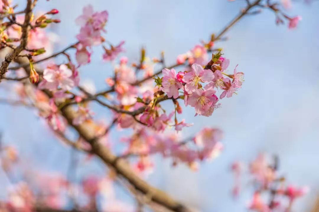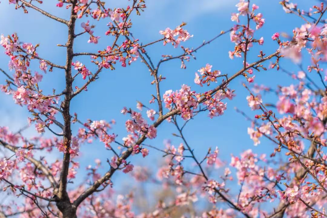 不止新品种出圈,玄武湖的经典早樱天团也集体上线!初美人樱、大寒樱、河津樱齐齐进入盛花期,粉白花瓣如云似霞,铺满湖畔堤岸。漫步湖边,春风拂过落樱缤纷,随手一拍都是春日氛围感大片。南京人专属的赏樱快乐已然上线,赶紧到玄武湖公园来踏青赏樱吧。
