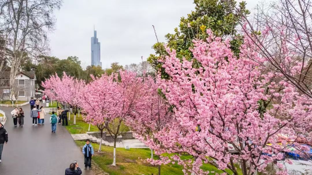 国产早樱绽放 玄武湖春日浪漫上线!