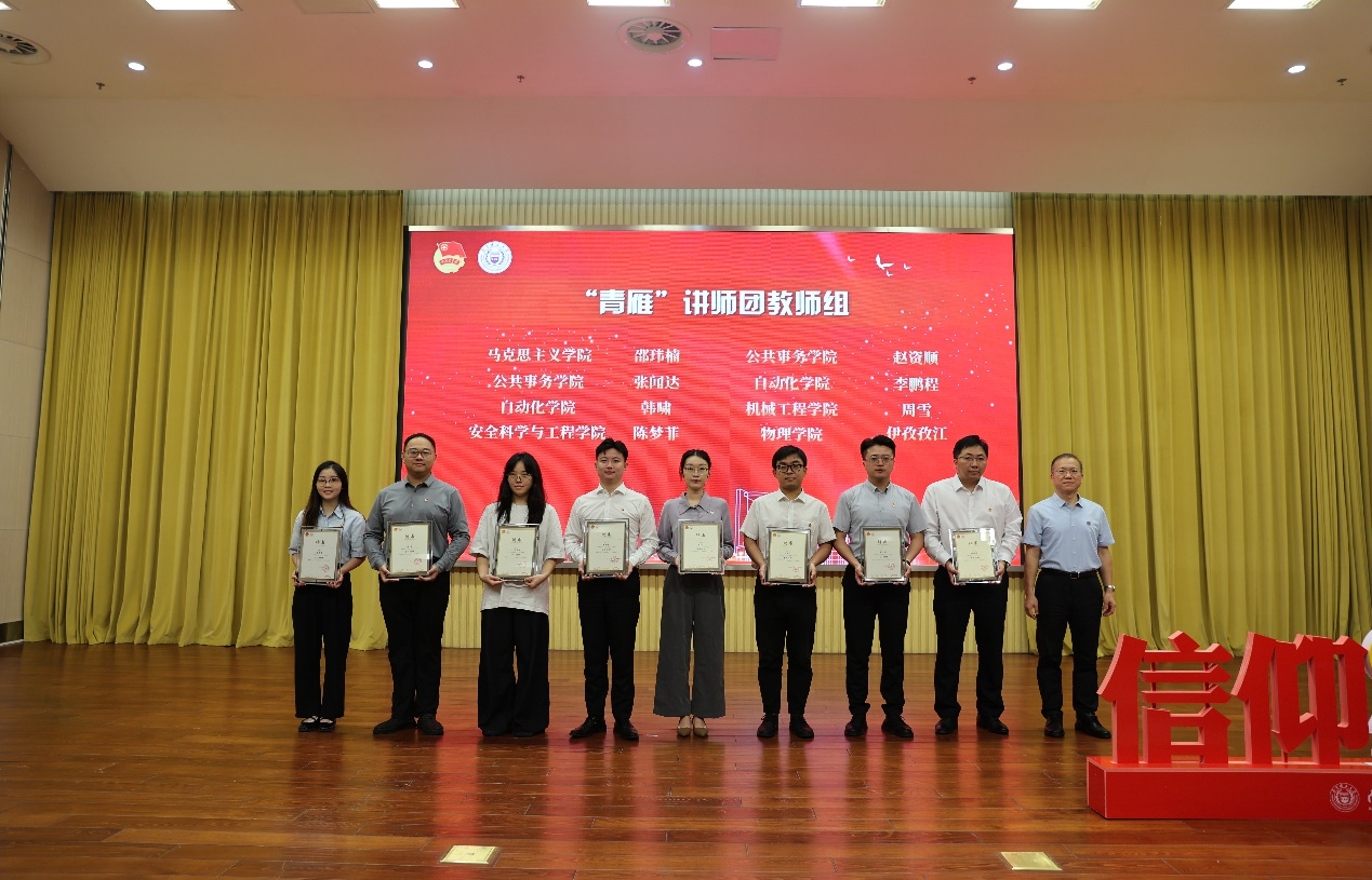 南京理工大学团委副书记张天娇从站位高远、把牢青春“新”使命,双级引领、提升讲师“新”能力,专题讲学、彰显宣讲“新”效能三方面介绍了“青雁”讲师团工作开展情况,致力于打通理论武装青年的“最后一公里”。第二批“青雁”讲师团聘任仪式上,校党委宣传部部长张珩、校团委书记凌晨分别为“青雁”讲师团成员颁发了聘书。