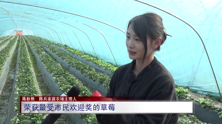 陈兵家庭农场主理人陈秋艳:“在草莓品控上面,我们都是会经过严格的筛选,所以大家买到我们家每一筐草莓,上下都是一模一样的。”